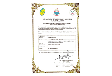ใบรับรองโรงงานผลิตเนื้อสัตว์อนามัย